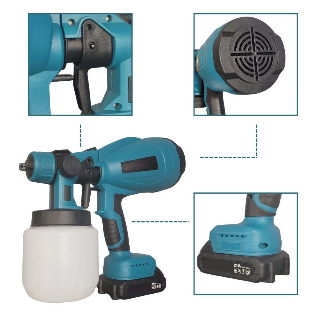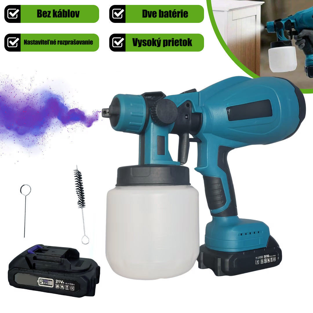 Professzionális Festékszóró Pisztoly Akkumulátorral, Állítható Permetezéssel